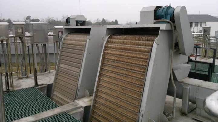 生活污水首先通過的是格柵,一般有粗細兩道。粗格柵在10-30毫米的間隙,細格柵在3毫米的間隙左右。污水中漂浮物和懸浮物在通過這里時被攔截,被螺旋輸送機或皮帶輸送機運輸至堆渣點,外運垃圾填埋場填埋。經過粗細格柵過濾后(有的在粗格柵后細格柵前)的污水為了降低后續系統復雜度和節能,一般都要通過泵站提升到全污水廠最高點,然后依靠重力流經后續的處理設施。