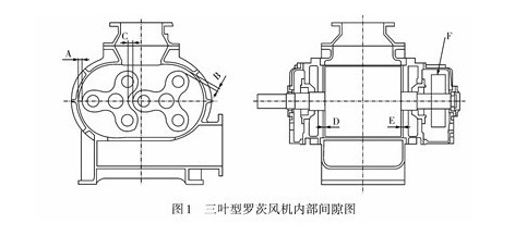 羅茨鼓風(fēng)機(jī)的葉輪與葉輪之間及葉輪與機(jī)體之間存在相對(duì)運(yùn)動(dòng),處于非接觸狀態(tài),必須有合適的工作間隙,才能保證既有密封作用又能使風(fēng)機(jī)正常運(yùn)轉(zhuǎn)。