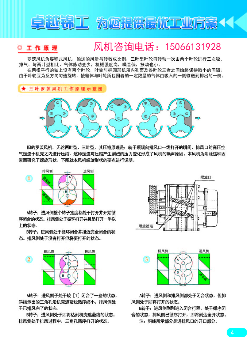 舊的羅茨鼓風(fēng)機,無論兩葉型、三葉型,轉(zhuǎn)子頂端向排風(fēng)口一線打開的瞬間,排風(fēng)口的高壓空氣逆流于機殼之內(nèi)進行壓縮,從而產(chǎn)生劇烈的壓力變化,形成了風(fēng)機的噪音。本風(fēng)機為消除這種因素而研究了螺旋形狀。詳細(xì)了解三葉羅茨風(fēng)機與兩葉羅茨風(fēng)機性能對比文章地址:http://m.fdtfyy.com/archives/3690