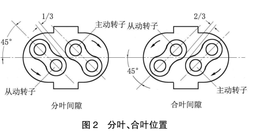 合葉為主動轉(zhuǎn)子的嚙合面向被動轉(zhuǎn)子有靠近的趨勢;分葉為主動轉(zhuǎn)子的嚙合面向被動轉(zhuǎn)子有遠離的趨勢。若轉(zhuǎn)子分、合葉間隙不合適,可調(diào)整齒套與輪轂或齒輪與軸的周向相對角度。